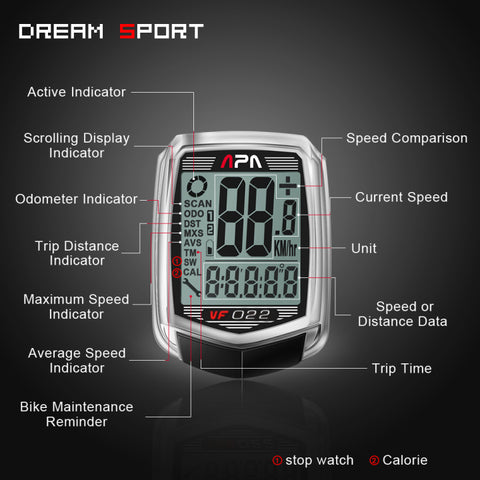 DREAM SPORT DCY022 Bicycle Speedometer Odometer 22-Function