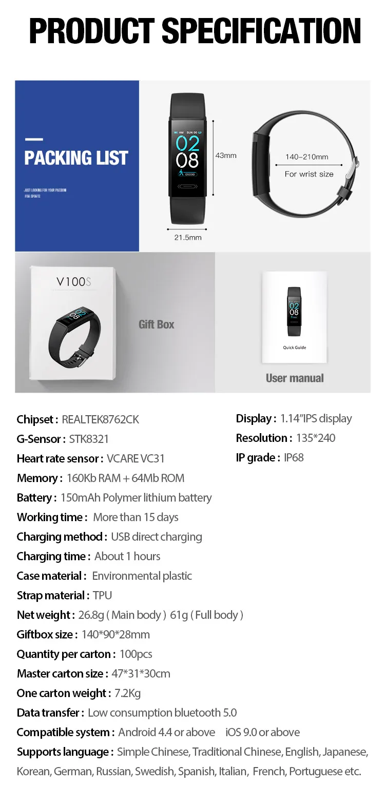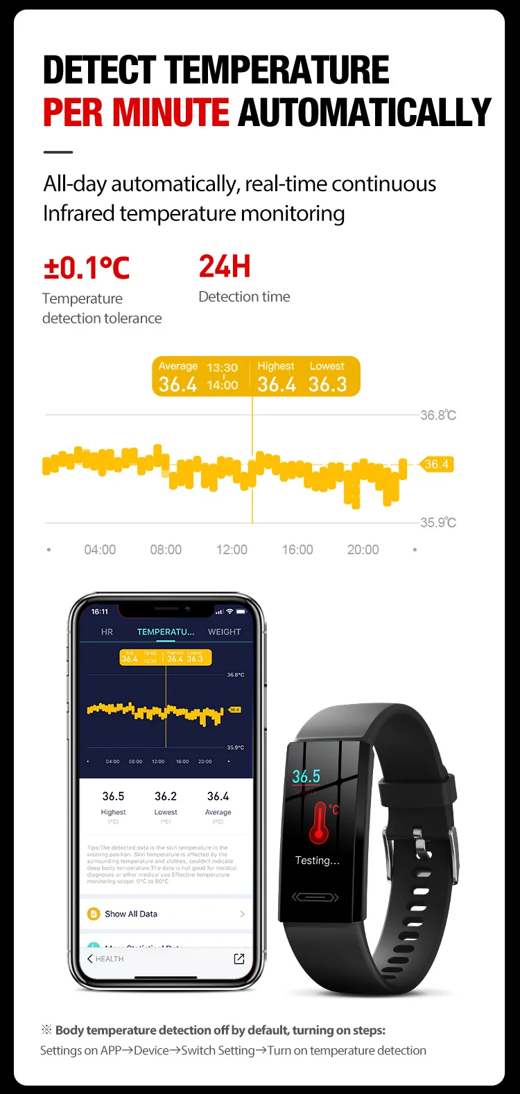 DREAMSPORT DB201 Smart Bracelet Color Screen Fitness Tracker Bluetooth Sport Waterproof Heart Rate Thermometer Smartband